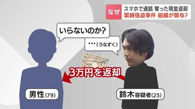 関係者によりますと、電話の直後、鈴木容疑者は奪った現金を男性に無言で返却。