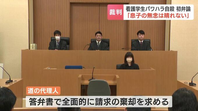 29日行われた初弁論で、男子学生の母親は「北海道が息子の自殺が教員のパワハラが原因であると認めない限り、息子の無念は決して晴れません」と意見を述べました。