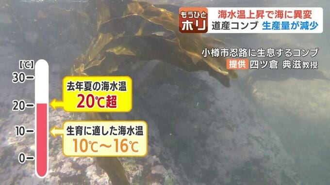 海水温の高さがコンブにも影響を与えているとのことですが、北海道立総合研究機構(道総研)によりますと、2024年の海水温は、2023年ほどの上昇はなく、2025年度の生産は一定程度、回復するのではないかということです。
