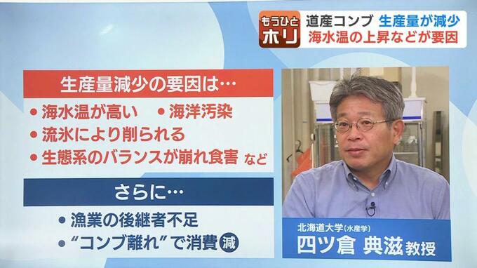 また、漁業の後継者不足や、消費者の“コンブ離れ”も生産量の減少に関わっているということでした。