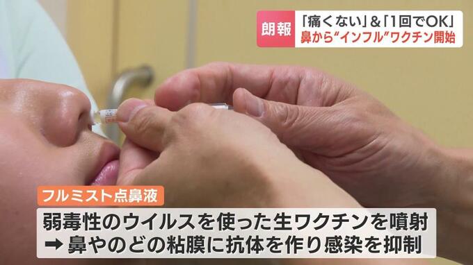 2歳から18歳までが接種の対象で、従来のインフルエンザワクチンと効果に変わりはないといいます。