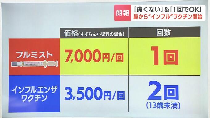 今回取材したクリニックの場合、「フルミスト点鼻液」の費用は7000円で1回の接種で済みます。
