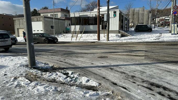 HBCの取材に対し乗用車の運転手は、アイスバーンでブレーキがきかず、前の車に追突しそうになったため左にハンドルをきったところ、電柱に衝突したと説明しています。