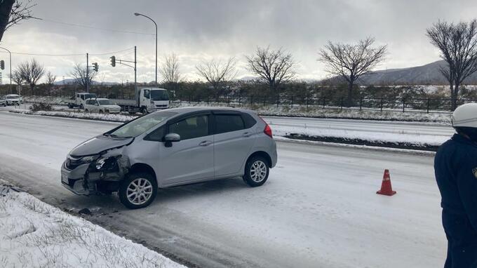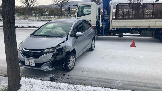事故当時、現場の路面は凍結していて、乗用車は夏タイヤでした。