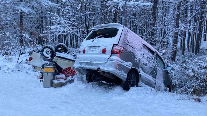 現場は片側一車線のほぼ直線道路で、路面は圧雪状態でした。