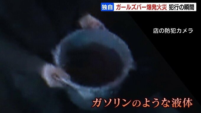 店の前の床にバケツを置き、ビンのようなものを手にして何かを玄関マットにまくような仕草を見せます。