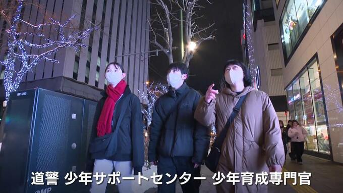冷たい風が吹きつける12月のある日。札幌の中心部を忙しく行き交う人々に目を光らせる3人の姿がありました。北海道警察の少年サポートセンターの少年育成専門官です。