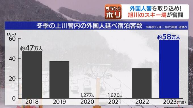 昨年度の冬に、上川地方に宿泊した外国人は延べ58万人を超え、コロナ禍前と比べても10万人以上増えました。