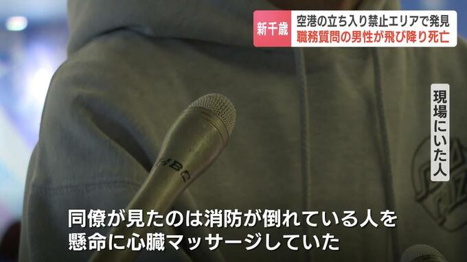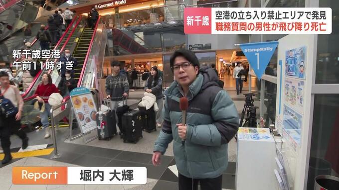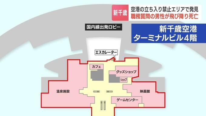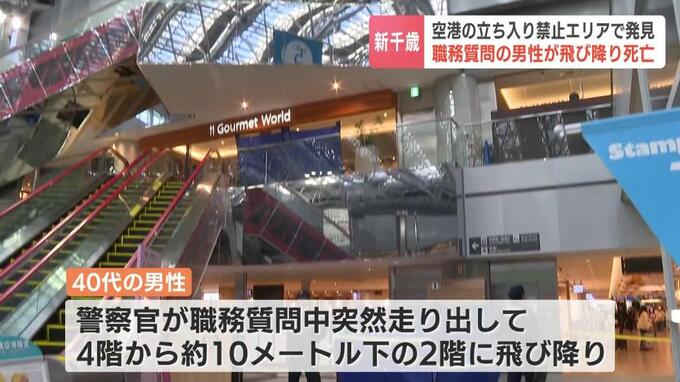 「新千歳空港ターミナルビル2階です。男性は4階にあるガラスの柵を乗り越えて、2階に転落しました」「近くの店の従業員によりますと、飛び降りる前、警察官と男性が揉めているのを見たということです」