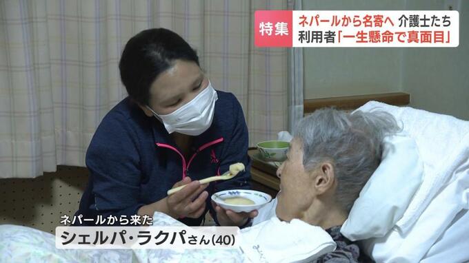 このうちネパールから来た人は7人。シェルパさんは、利用者の介護をしながら、後輩の指導にもあたっています。