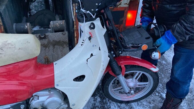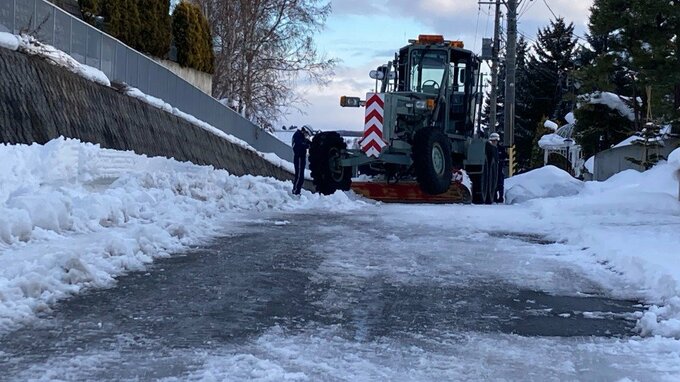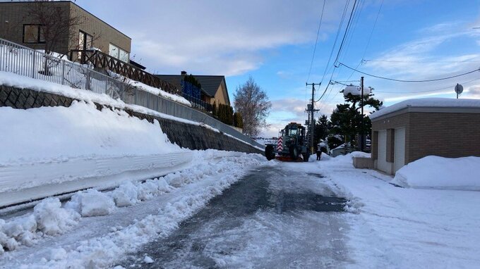 29日午後2時半すぎ、旭川市神楽岡12条8丁目の市道で、バックしていた除雪車と走ってきた郵便配達のバイクが衝突しました。