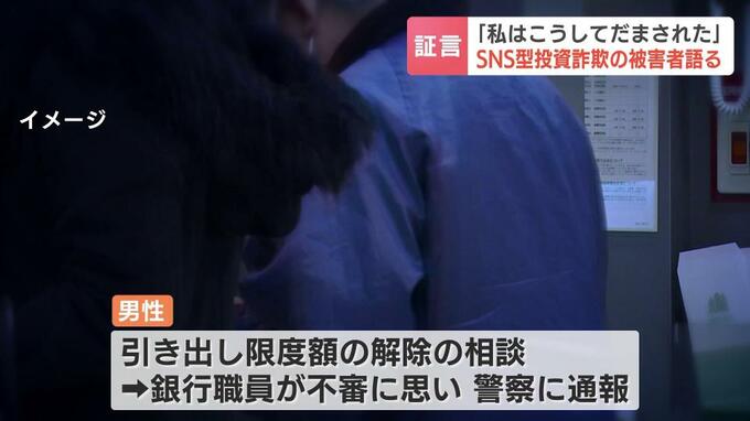 男性が、銀行の窓口に引き出し限度額の解除を相談したところ、不審に思った銀行の職員が、警察に通報し、事件が発覚しました。