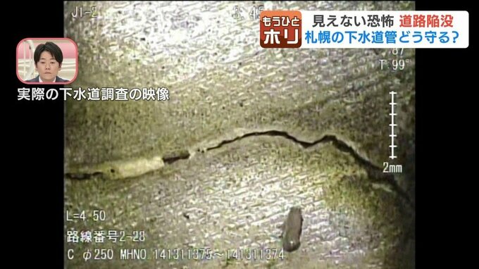 「下水道本管の中を自走して、カメラで撮る機械になります。人が入れないところはこういったカメラで調査することになる。小さな破損が経過して、ひび割れが広がり、陥没につながる恐れがある。そのため定期的な調査が必要」
