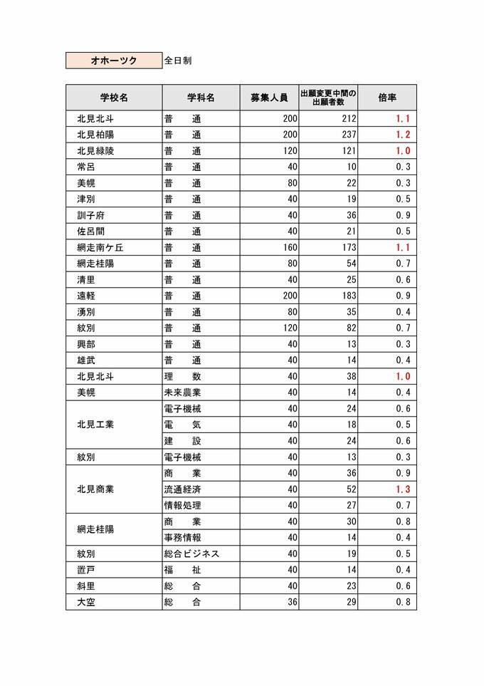 【公立高校入試】出願変更の中間発表 札幌西は27人減で1.4倍に(当初1.5倍)札幌南は8人減で1.3倍