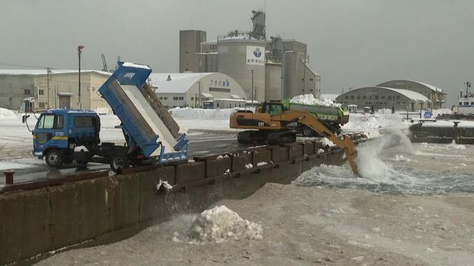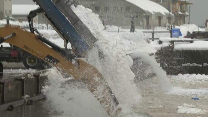 ただ運び込まれる雪には、路上に撒かれた滑り止め用の砂なども混ざっているため、毎年春から夏にかけて、浚渫(しゅんせつ)作業をし、海底にたまった土砂やごみを取り除いています。