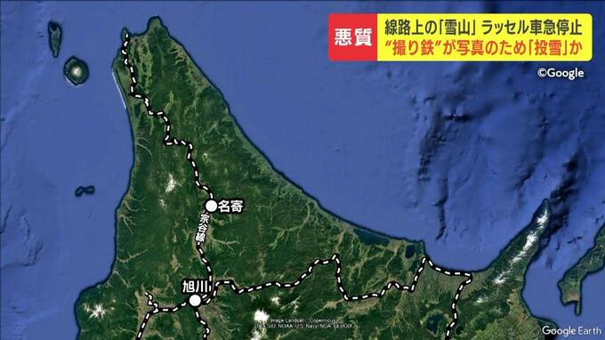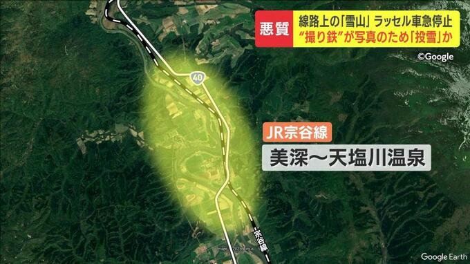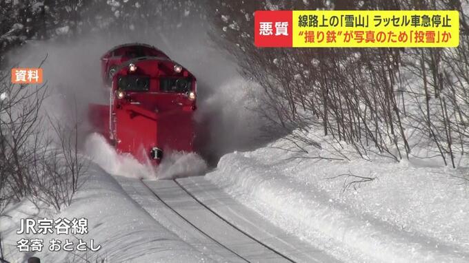 鉄道ファンが写真を撮るために雪を投げ込んだためとみられています。