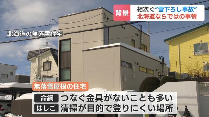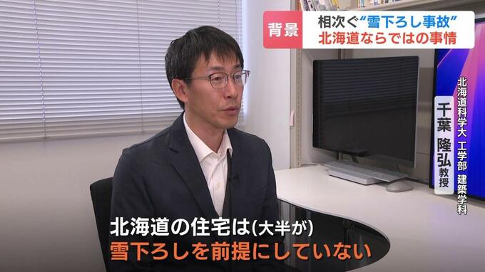 千葉教授は、住人が自らはしごを設置したり命綱を誤って使ったりすることが事故につながるとみていて、無落雪屋根の場合は無理に雪下ろしをしないよう呼び掛けています。