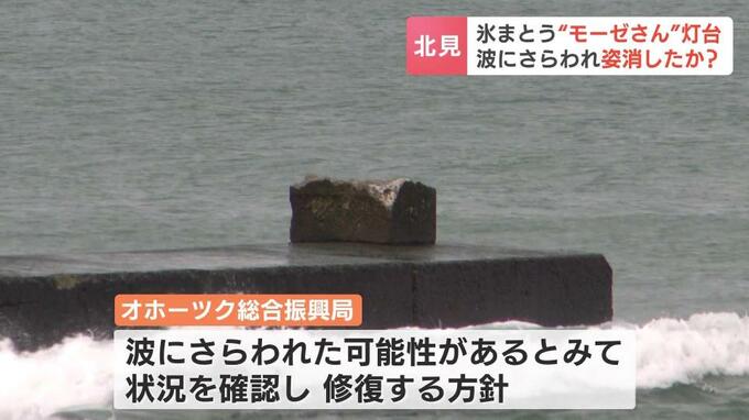 灯台の姿が最後に確認された11日は、北見に『高潮注意報』が出ていました。灯台を管理するオホーツク総合振興局は、波にさらわれた可能性があるとみて、状況を確認し、修復したいとしています。