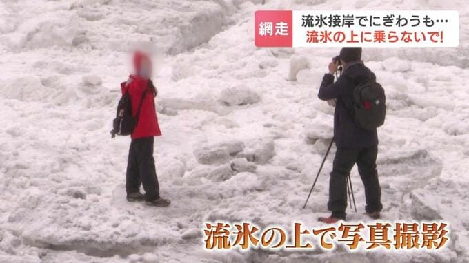 北海道網走市に流氷がやってきて、観光客の気分はノリノリですが、こんな所に「乗って」はいけません。