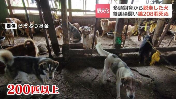1月、北海道網走市で野犬が養鶏場を襲い、208羽の鶏が死にました。