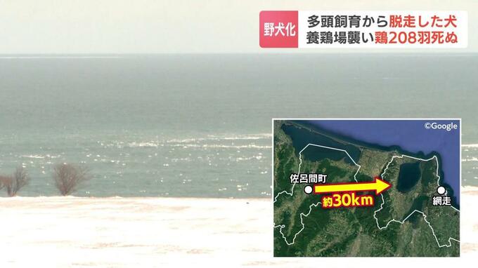 1月28日、網走市内の養鶏場で野犬が鶏を襲い、飼われていた328羽のうち、208羽が死にました。