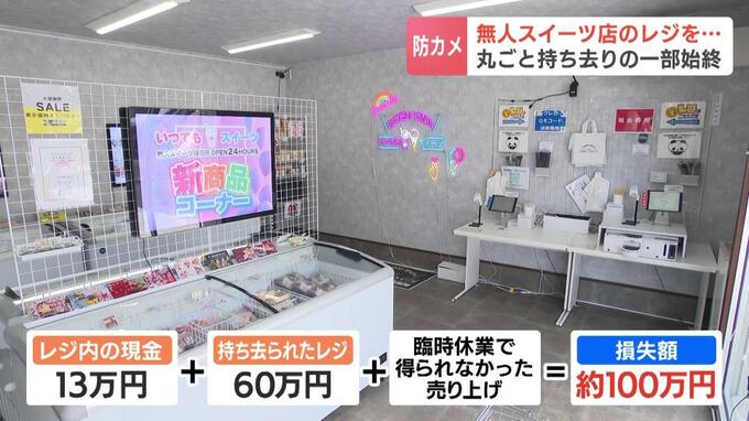 レジに入っていた現金は約13万円。持ち去られたレジは約60万円で、臨時休業で得られなかった売り上げなども含めると損失額は100万円に上るといいます。