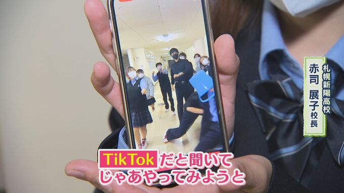 バズり動画で中学生へアピール!札幌の高校の「TikTok」部 2022年10月11日(火) 11:54 国内 話題・グルメ しかし、なぜ、学校でTikTokなのでしょうか。 札幌新陽高校の赤司展子校長は、「今の中学生はどうやら、フェイスブックとかインスタとかツイッターよりもTikTokだ、というのを聞いて、じゃあTikTokのSNSをやってみようってなったんですね」と説明します。 そう、このTikTokは、中学生に「札幌新陽高校へ入学したい」と思ってもらうためのPR活動なのです。 「TikTokBU」で活動する1年生の南出優佳さんは「中3の方々に新陽高校っていうのを知ってもらうためとか、(学校生活が)楽しいんだよっていうことを届けられたらいいなって思ってやっています」 顧問の青山真里子さんは、こうした学校ぐるみでのSNSでの活動を「私たちの時代ではありえなかったことですごく新鮮」としつつ、「私も楽しいなと思ってやらせてもらっている」と話します。