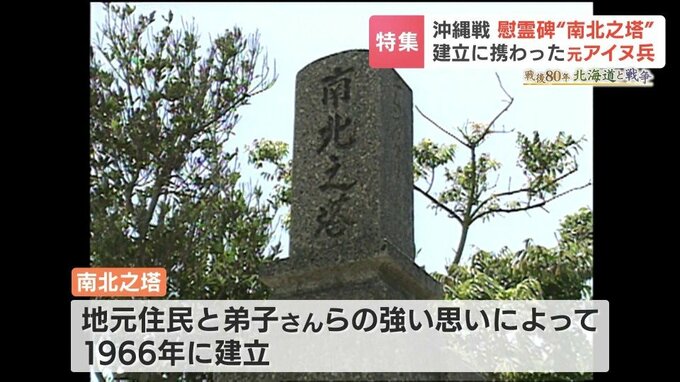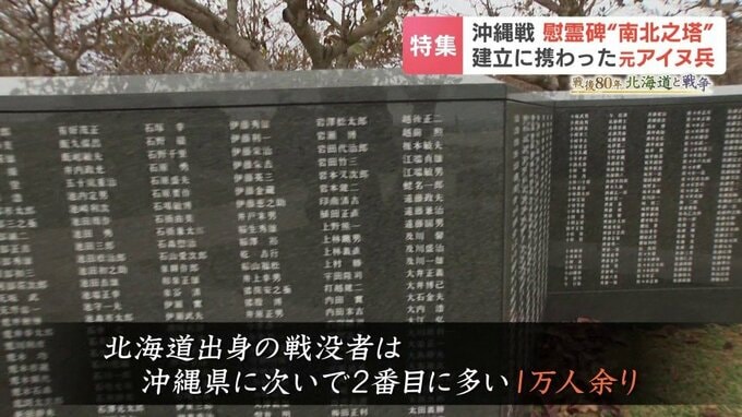 日米合わせて20万人の死者を出した沖縄戦。国内最大の地上戦が繰り広げられたその地に、アイヌの言葉が刻まれた慰霊碑がたっています。ともに沖縄戦を戦った、アイヌと地元住民の絆に迫ります。
