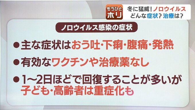 この冬は『ノロウイルス』の感染が全国的に広がっているとのことですが、発症してしまったら対症療法しかないわけですが、當瀬さん、注意するポイントはありますか?