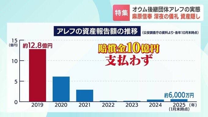 『アレフ』には事件の被害者への賠償金10億円の支払い命令が科せられています。しかし、支払っていません。報告される資産額は、年々減少しているとされます。