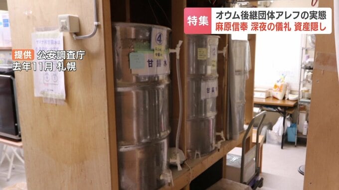 台所には、松本元死刑囚のエネルギーを込めた水とされる、甘露水のタンクも確認されています。