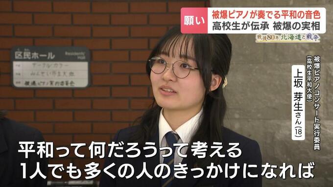・被爆ピアノコンサート実行委員(高校生平和大使) 上坂芽生さん(18)