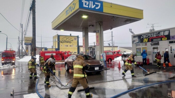 1日午後3時すぎ、北海道稚内市のセルフ式のガソリンスタンドで、給油ノズルを差し込んだまま車が発進し、ガソリン約50リットルが流出しました。
