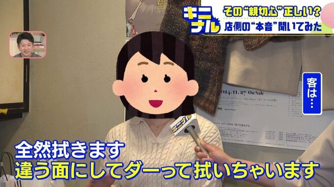◆飲食店で、汚れたテーブルをおしぼりで拭くのは…