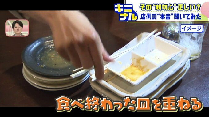 また、お皿を重ねた後に通路に置く行為は、ひっかかる危険があるので控えてほしいということでした。