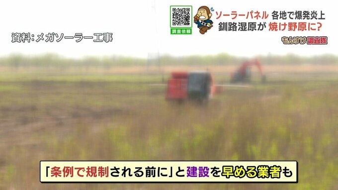 なんと釧路湿原では今、条例が制定される前に、太陽光発電所を建設しようと、駆け込みで工事が進められているという。