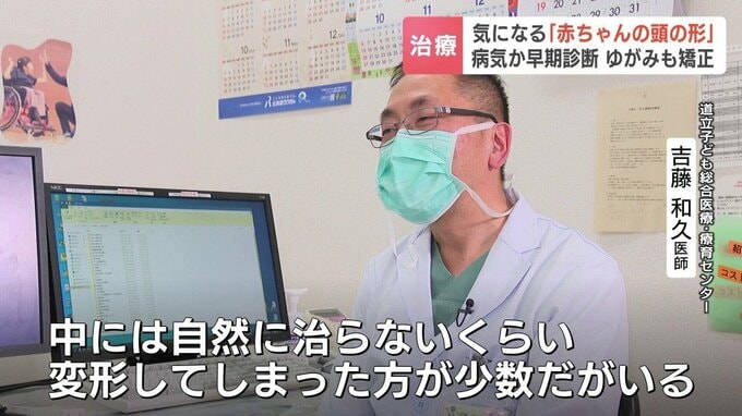 「(向き癖は)自然経過とケアをする事によってほとんど治るが、中には自然に治らないくらい変形してしまった方が少数だがいる」