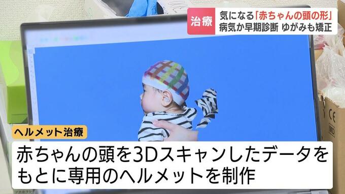 治療では赤ちゃんの頭を3Dスキャンし、データをもとに専用のヘルメットを制作。