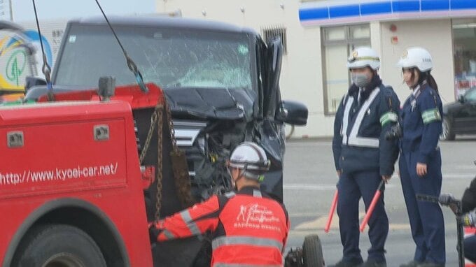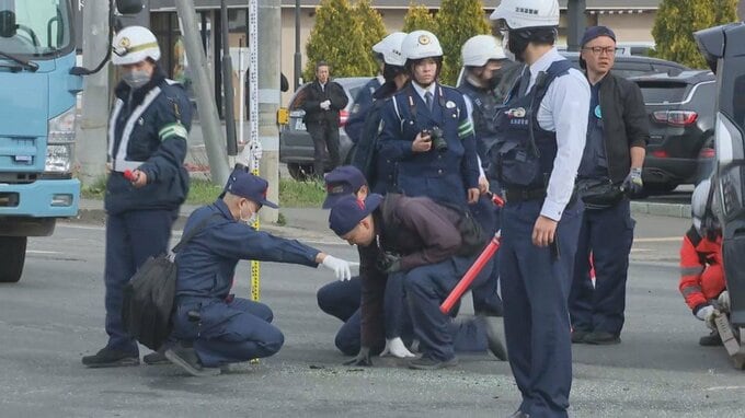 警察や消防などによりますと、直進してきた軽乗用車と右折してきたトラックが衝突し、軽乗用車に乗っていた2歳の女の子が心肺停止の状態で病院に運ばれました。
