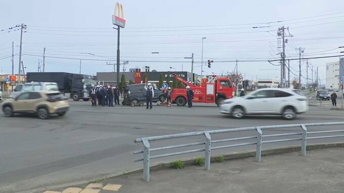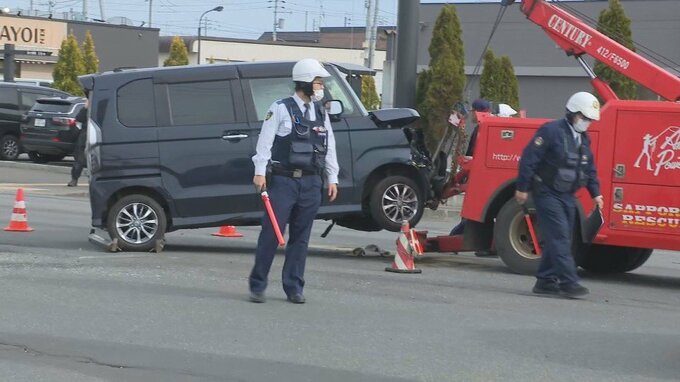 事故があったのは、札幌市東区東雁来10条3丁目付近の国道275号線と市道が交わる交差点で、22日午後1時すぎ、事故の当事者から「交通事故で、車の中で意識がない」と消防に通報がありました。