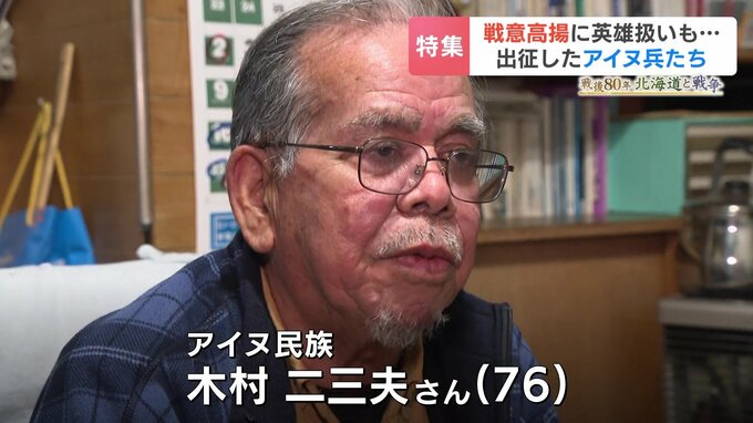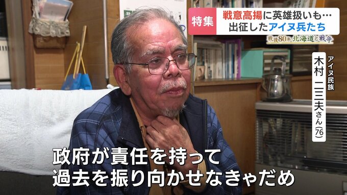 北海道の平取町で、遺骨の返還運動などにも取り組む、アイヌ民族の木村二三夫さん(76)です。旭川市の部隊に入隊した父親の一夫(いちお)さんからは、差別についての話は、ほとんど聞いたことがないと話します。