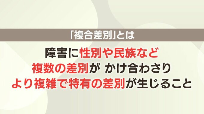 安達さんが取り組んだ『複合差別』―。それは障害に加え、性別や民族など、複数の差別がかけ合わさり、より複雑で深刻な差別が起きていくことを意味します。