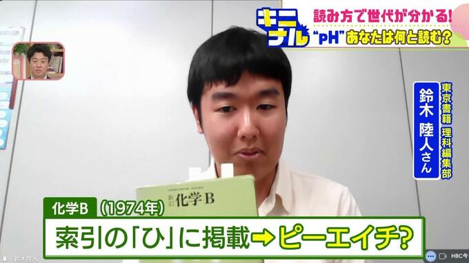 「1973年に東京書籍が発行した基礎理科という高校の教科書があり、索引を見ると『へ』のところにありペーハーと読んでいたと推測されます、一方で1974年の教科書では索引上で『ひ』のところにあるため、この時期には「ピーエイチ」と取り扱っていたと推測されます」