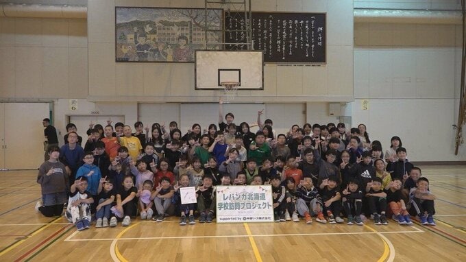 また、レバンガ北海道のSDGs活動「レバンガアクション」の一環として、授業や遊びで使えるように、小学校にバスケットボールが贈られました。