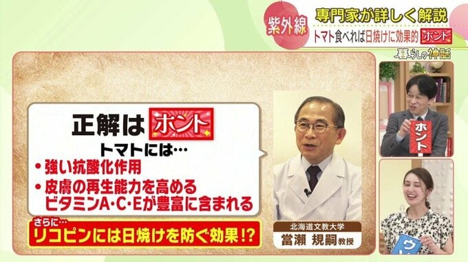 「本当かな。トマトは食べると結構冷えますよね。体も冷えて日焼けはしにくくなるのかな」