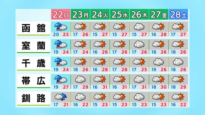 北海道付近を21日夜から22日にかけて前線が通過し、暖かく湿った空気が流入するため、大気の状態が不安定となるでしょう。