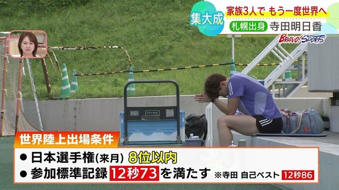自己ベストを上回るタイムが必要で、7月の日本選手権での記録突破を目指す寺田選手。