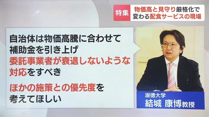 社会福祉が専門の淑徳大学・結城康博教授は、「自治体は物価高騰に合わせて補助金を引き上げ、委託事業者が衰退しないような対応をすべき。