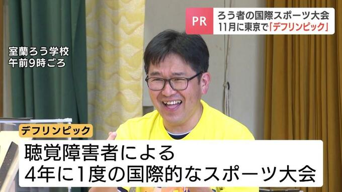 11月に、東京で開催されるのに先立ち、北海道ろうあ連盟は8日北海道室蘭市のろう学校をおとずれ、生徒たちに出場選手を紹介したり、実際のメダルを見せたりして大会についてPRをしました。