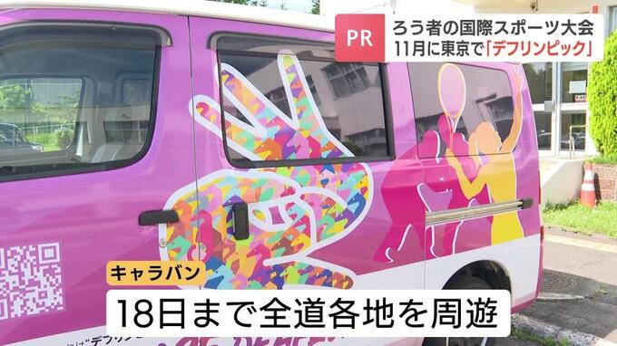 11月に東京で開かれる、聴覚に障害がある人たちの国際的なスポーツ大会「デフリンピック」について理解を深めてもらおうと、全道でキャラバンが行われています。